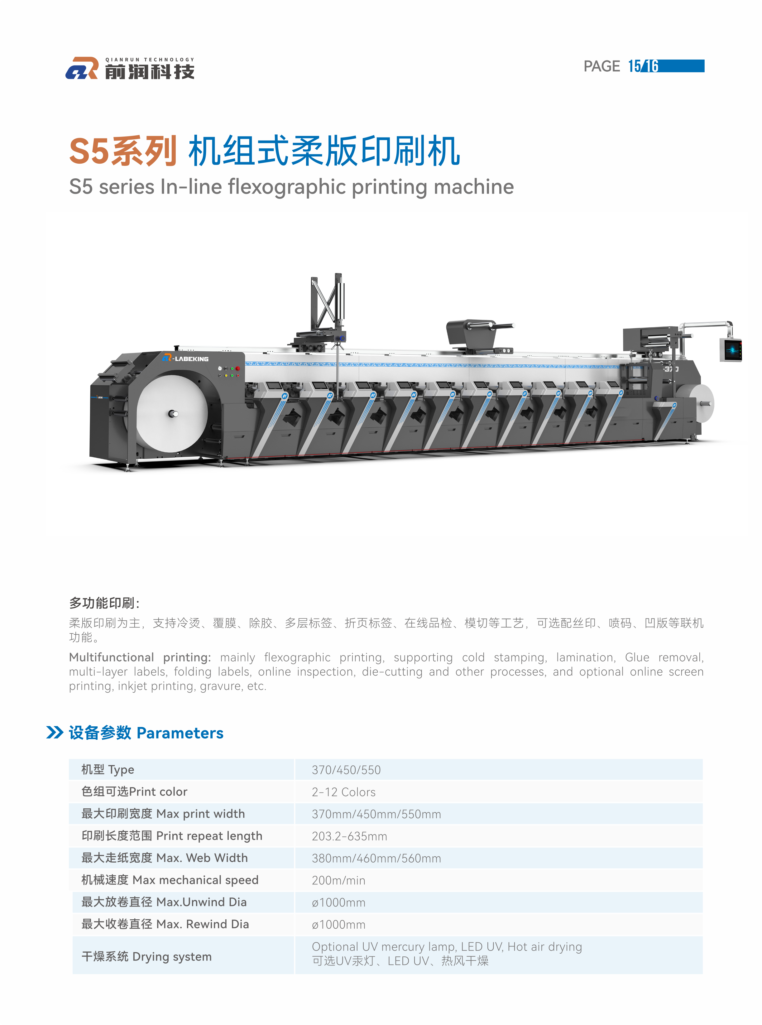 5??多功能印刷: 柔版印刷為主,支持冷燙、覆膜、除膠、多層標簽、折頁標簽、在線品檢、模切等工藝,可選配絲印、噴碼、凹版等聯機功能。